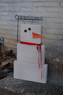 I saw the most ADORABLE 2x4 Snowman. I fell in love with it and knew I wanted to make one. Off i went to Lowes to get me a 2x6. I did a 2x6 instead of a 2x4 because I wanted to make it bigger to go outside. I tried to make it as different as I could. I didn't add the sign and I used an orange paint sample card as the nose and added a red tie to him. Ive got so more wood, I was gonna make 2 to go on both sides of our stairs and make a girly one and a boy one but now im not sure ive got some other ideas brewing